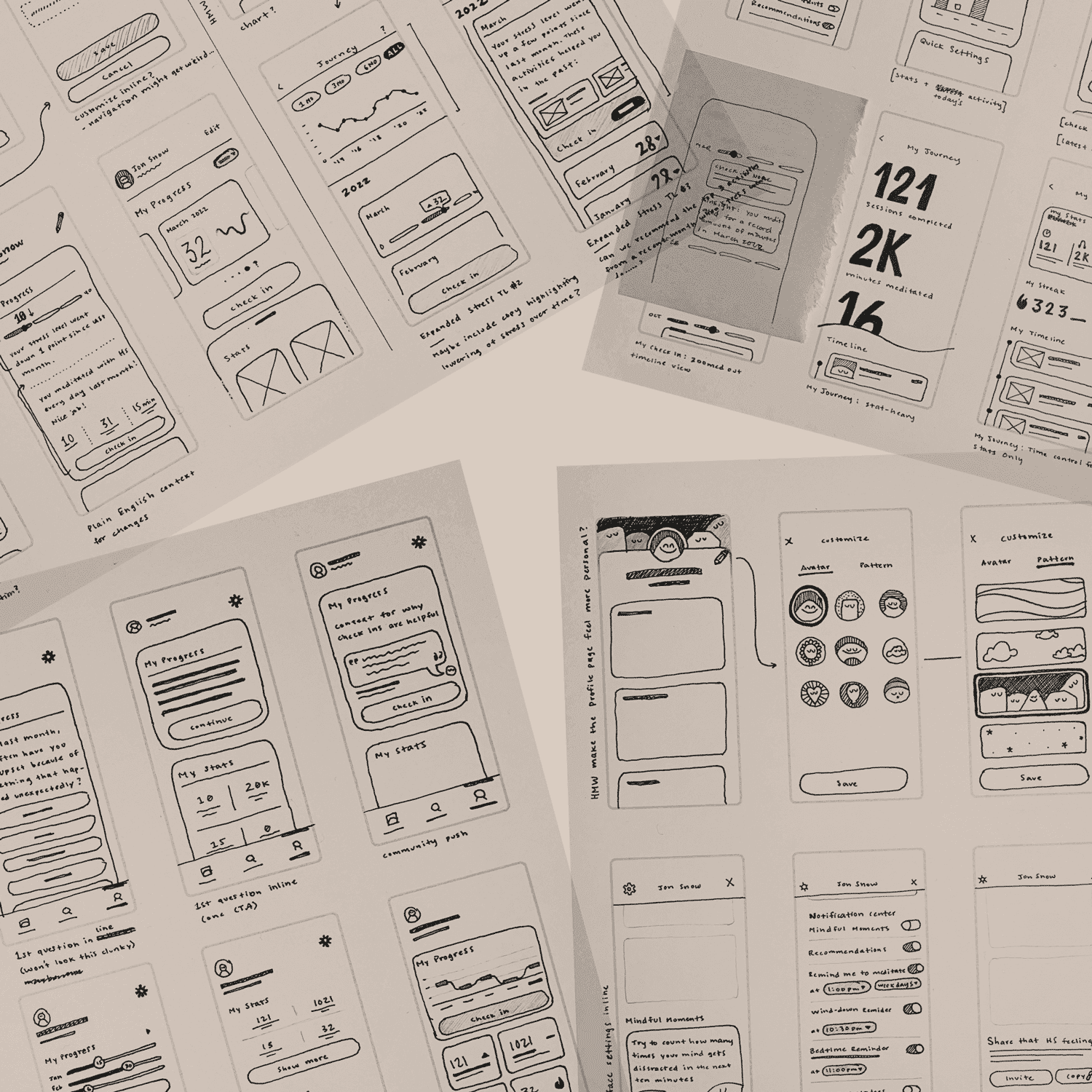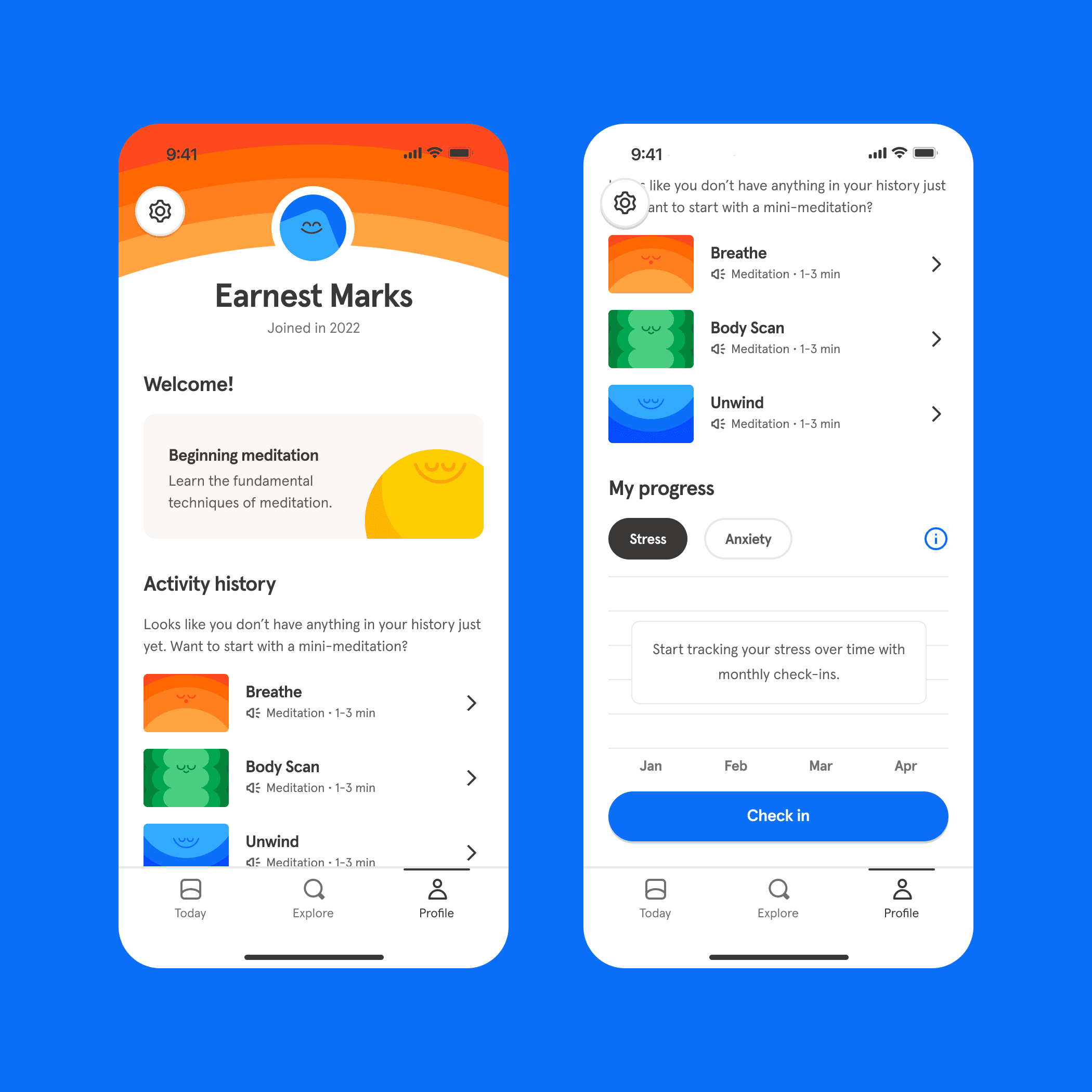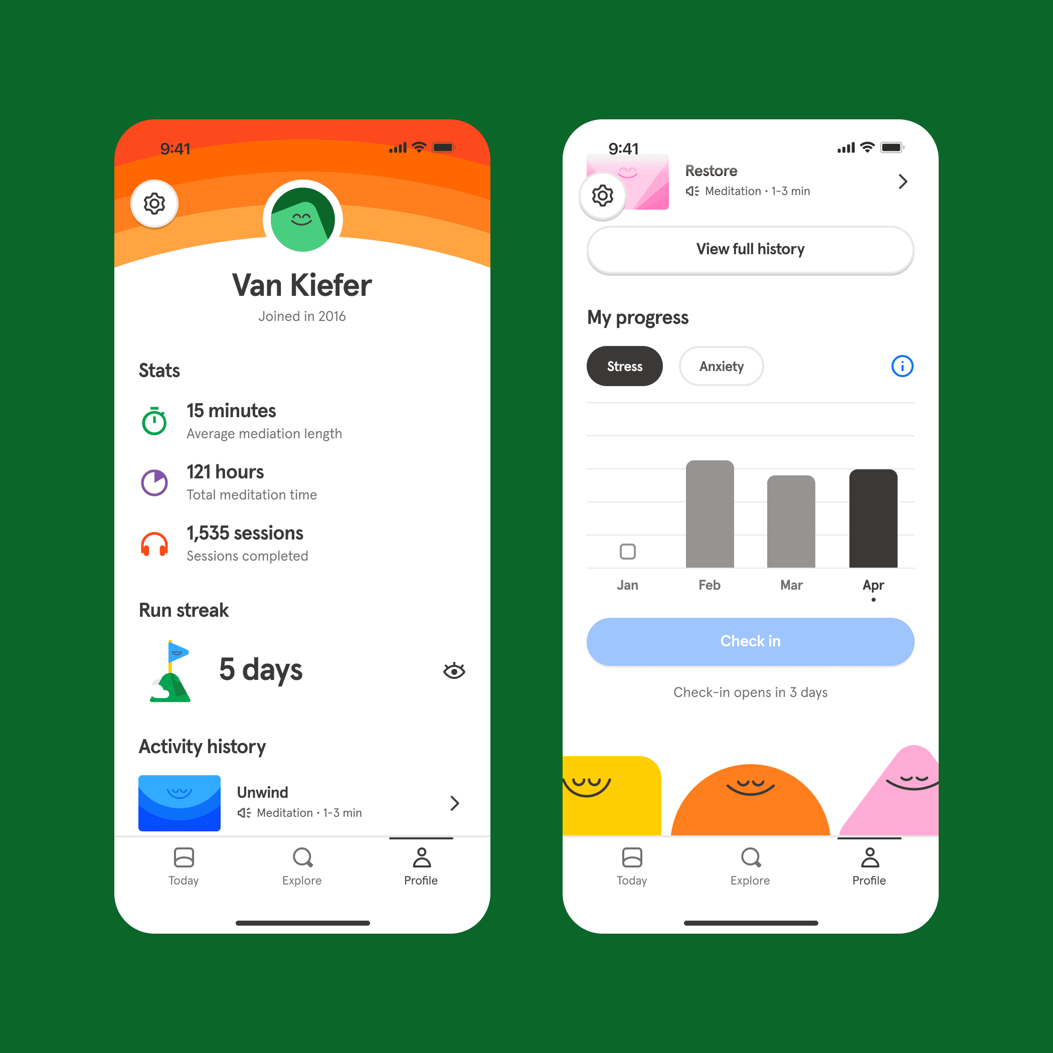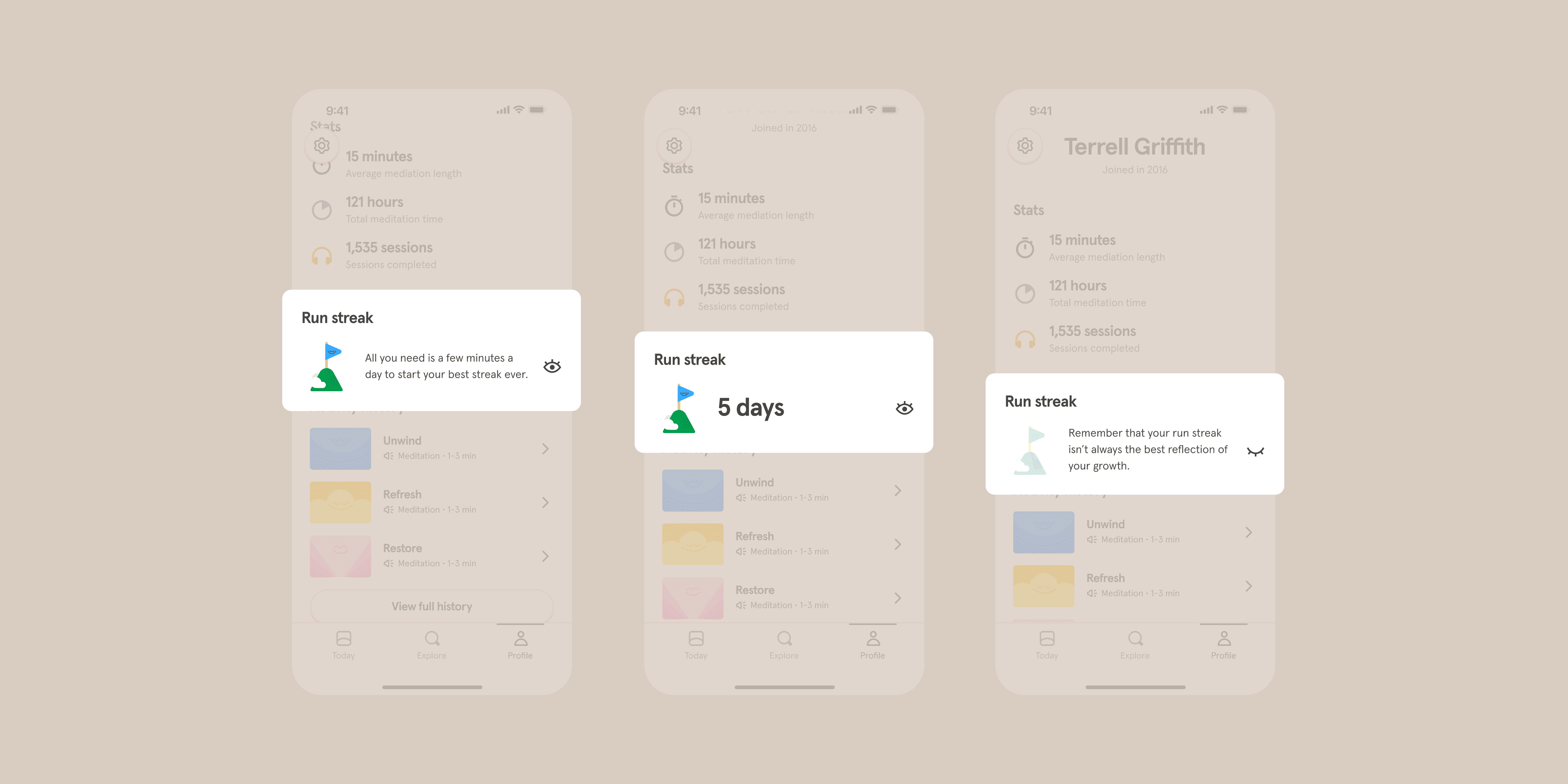 User Problem: before a slated information architecture (IA) shuffling just prior to kicking off this work, Headspace's profile page was not very discoverable and hard to parse.
