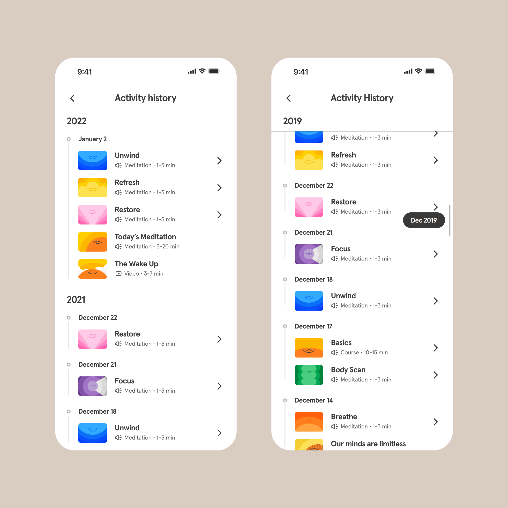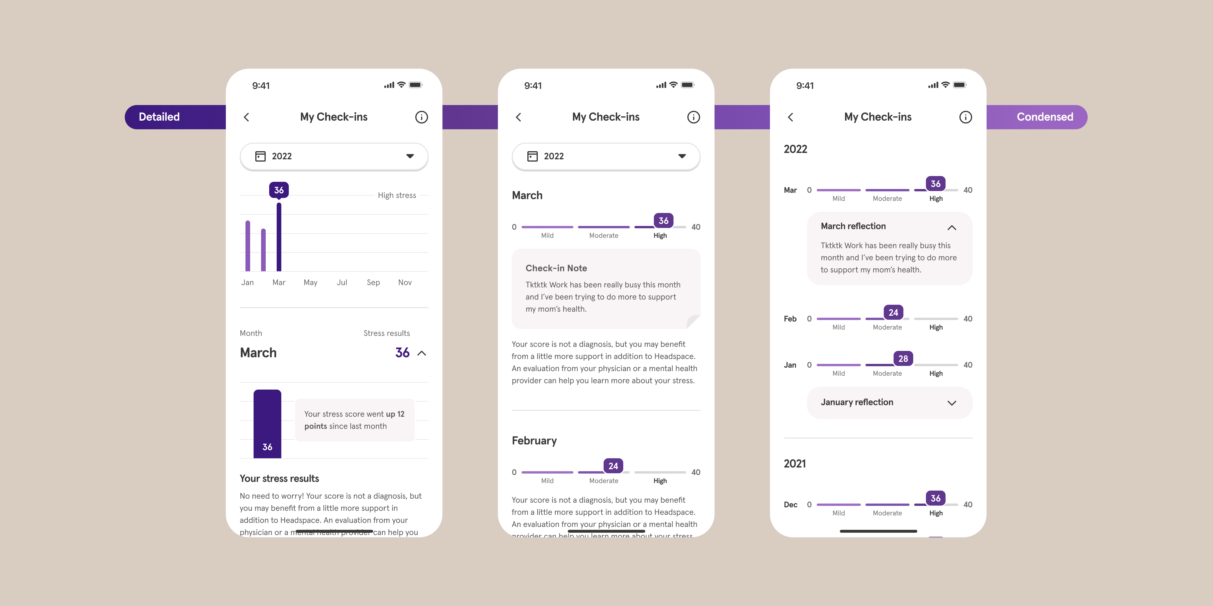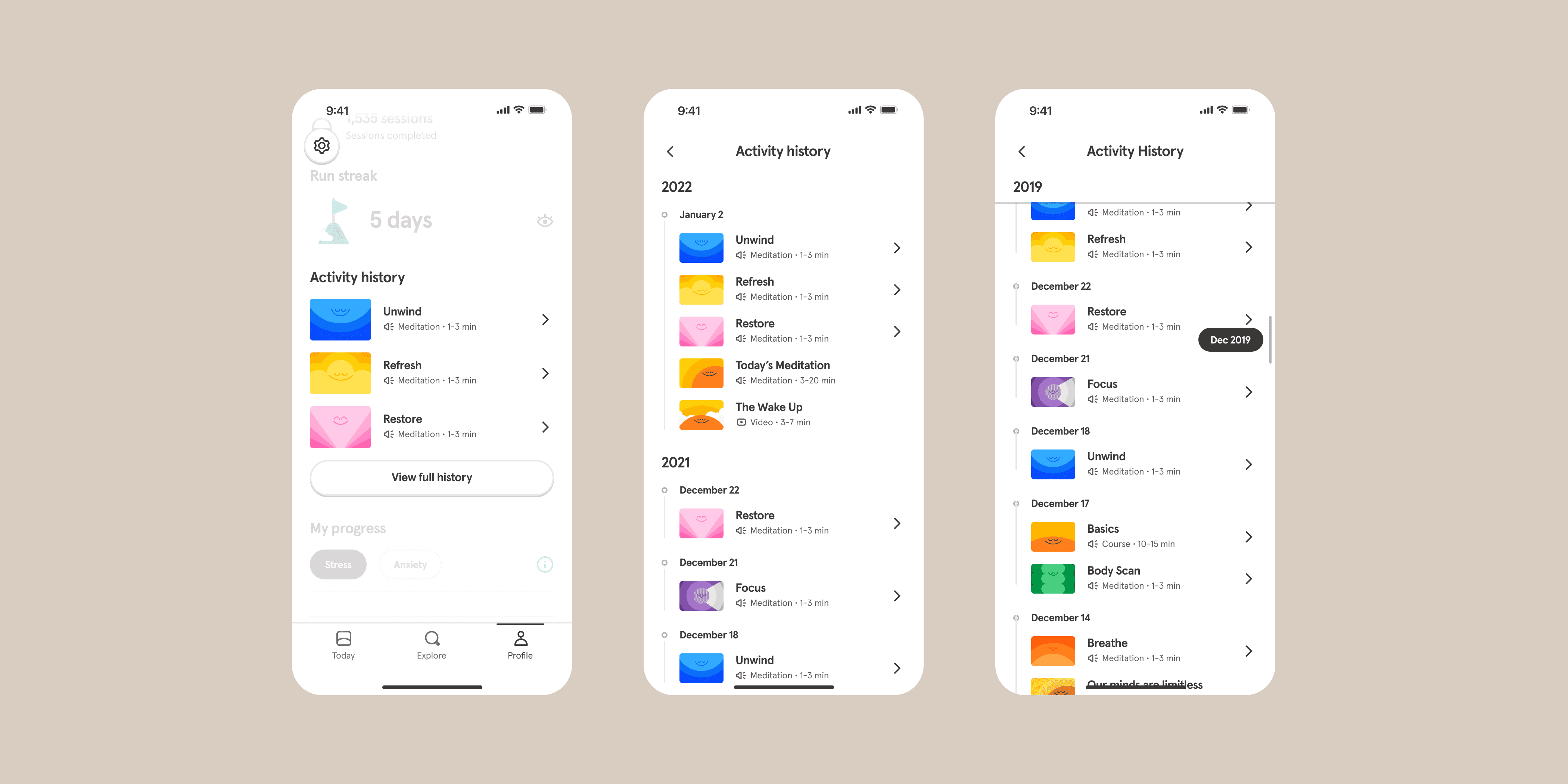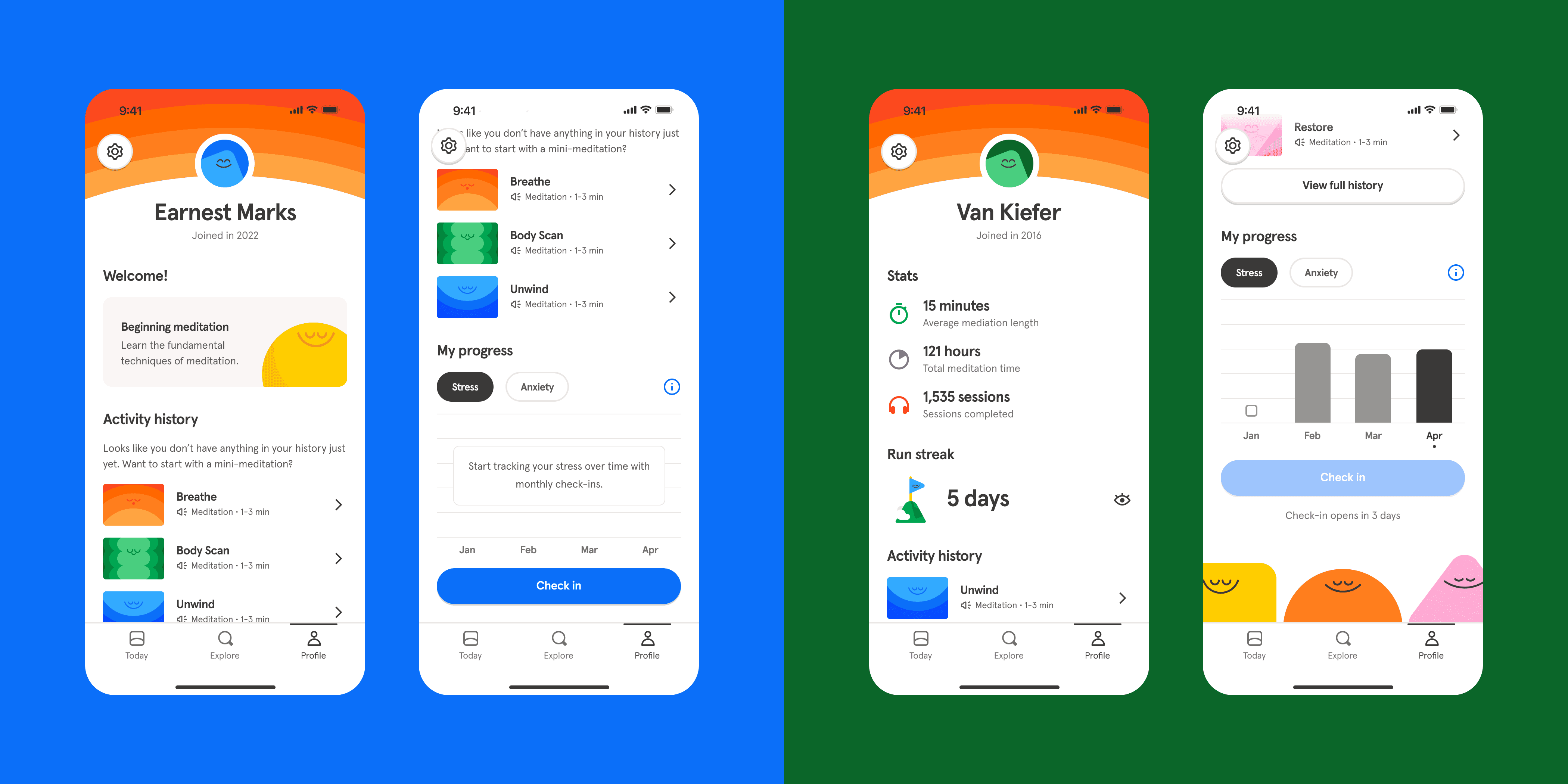 User Problem: before a slated information architecture (IA) shuffling just prior to kicking off this work, Headspace's profile page was not very discoverable and hard to parse.