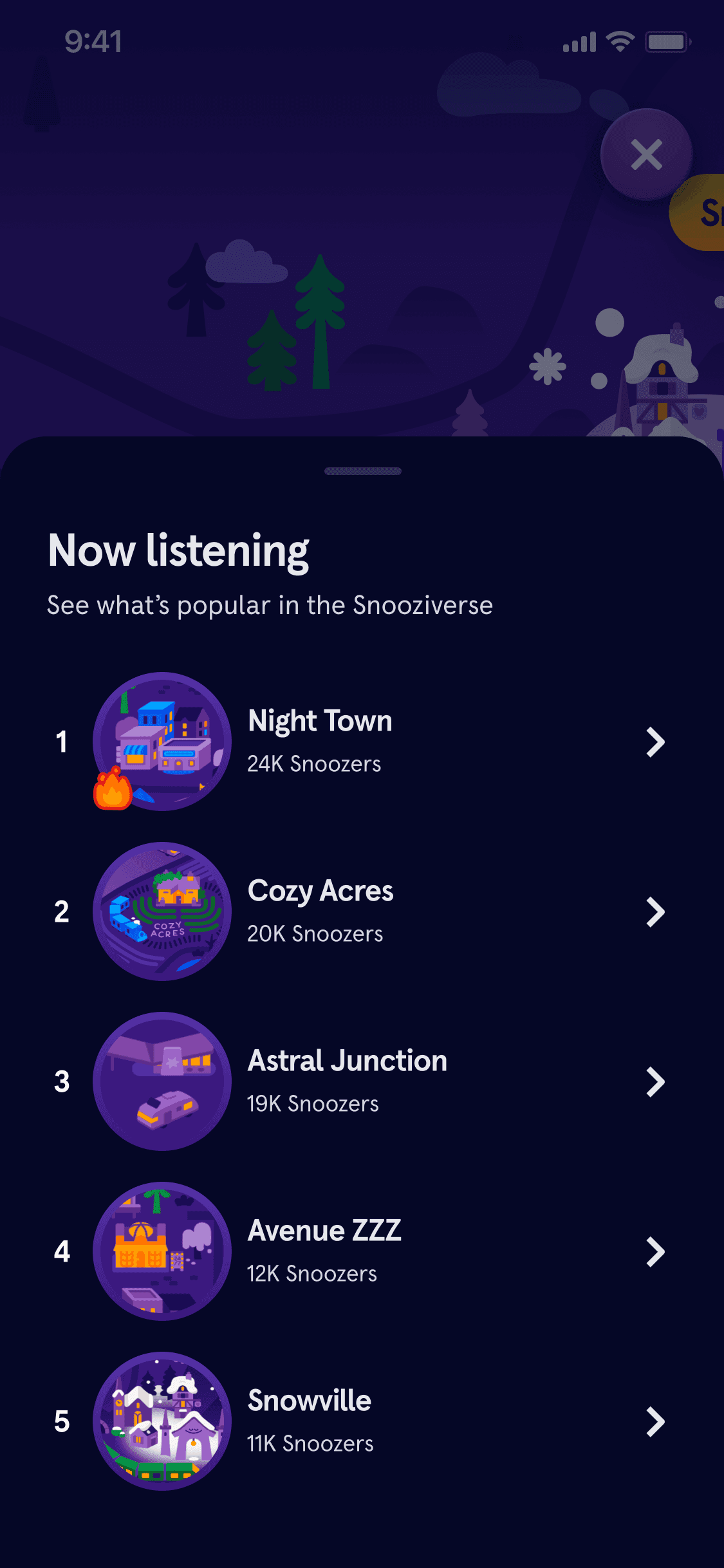 Well, my problem was that I was nearing the end of a large and arduous project. At a point in the project when I felt like I needed to re-stimulate other parts of my brain, I had seen a map for the Snooziverse¹ that was drawn a few years ago and immediately wanted to turn it into an interactive, in-app experience. In the margins of my time, I wanted to create an immersive and engaging way for paying and non-paying members to discover award-winning content that helps them fall asleep and stay asleep.